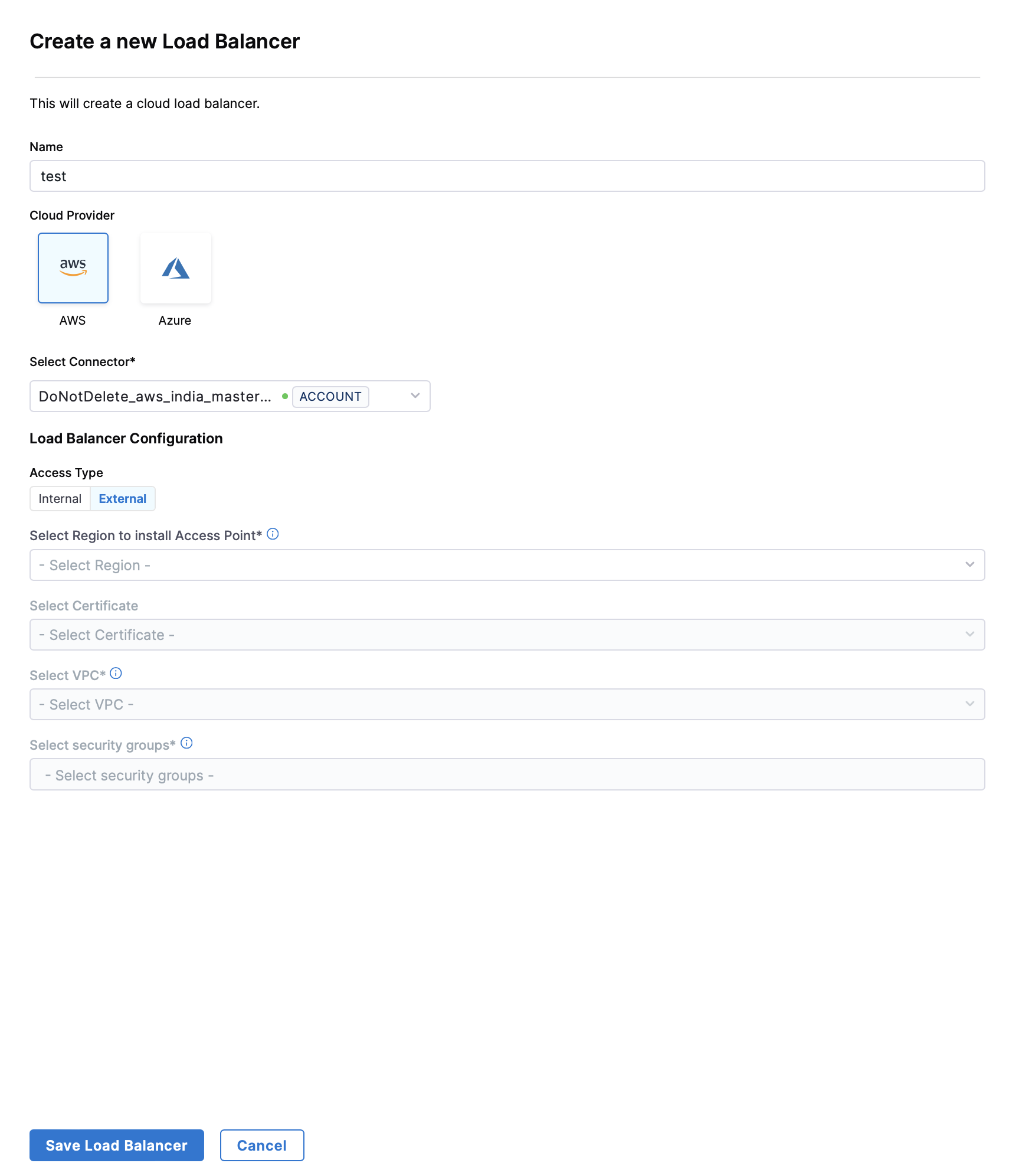 Click Save Load Balancer