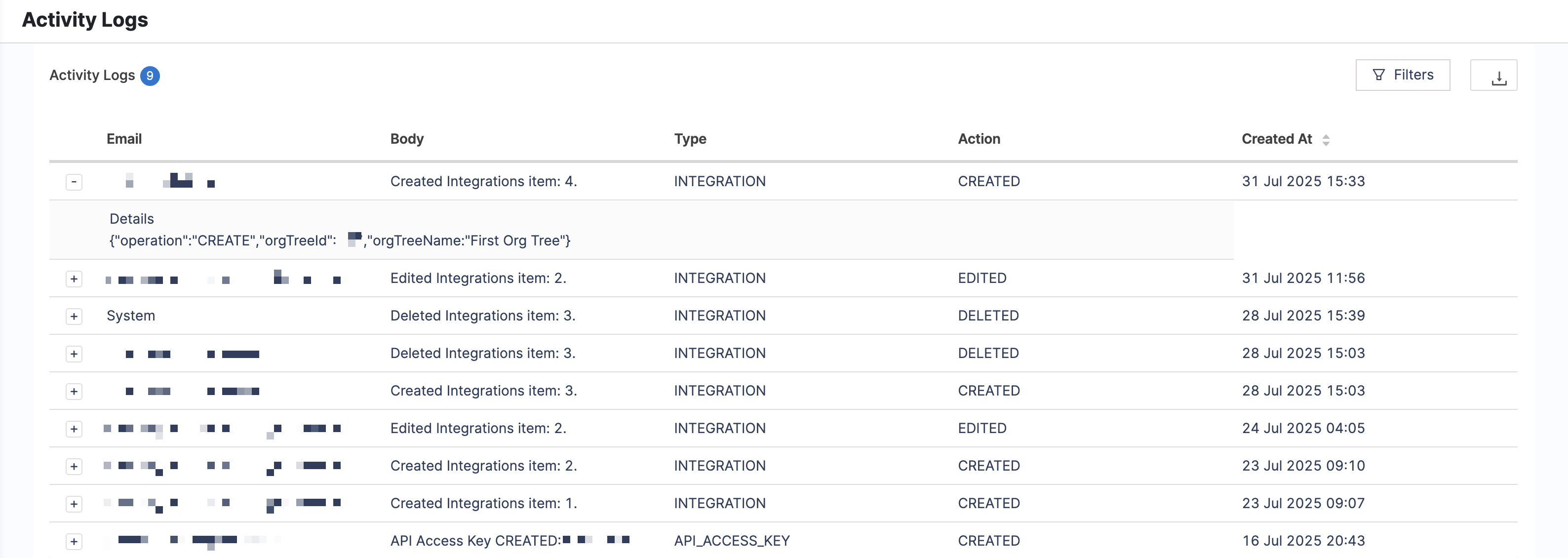 • In the Activity Logs tab we have added the support for adding Type as a Filter. This allows you to filter the activity logs using filters such as Action, Email, and more. (SEI-5157) (SEI-5343)